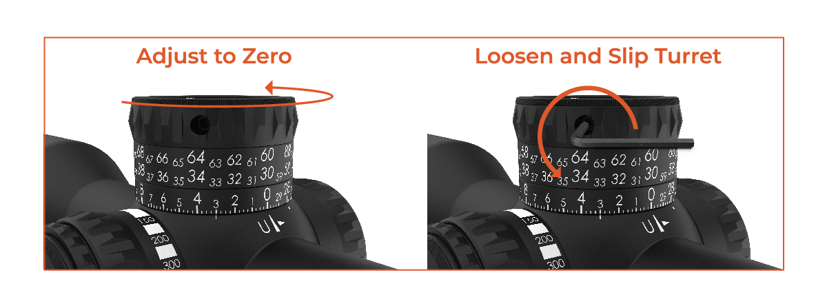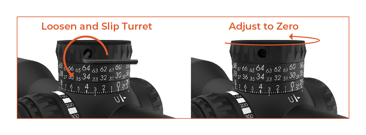 3. Slip the turret clockwise back to the Zero Position (no clicks will be felt/heard).