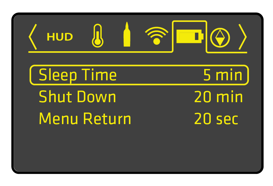 When at the main screen Press ENTER and HOLD to power off the riflescope.