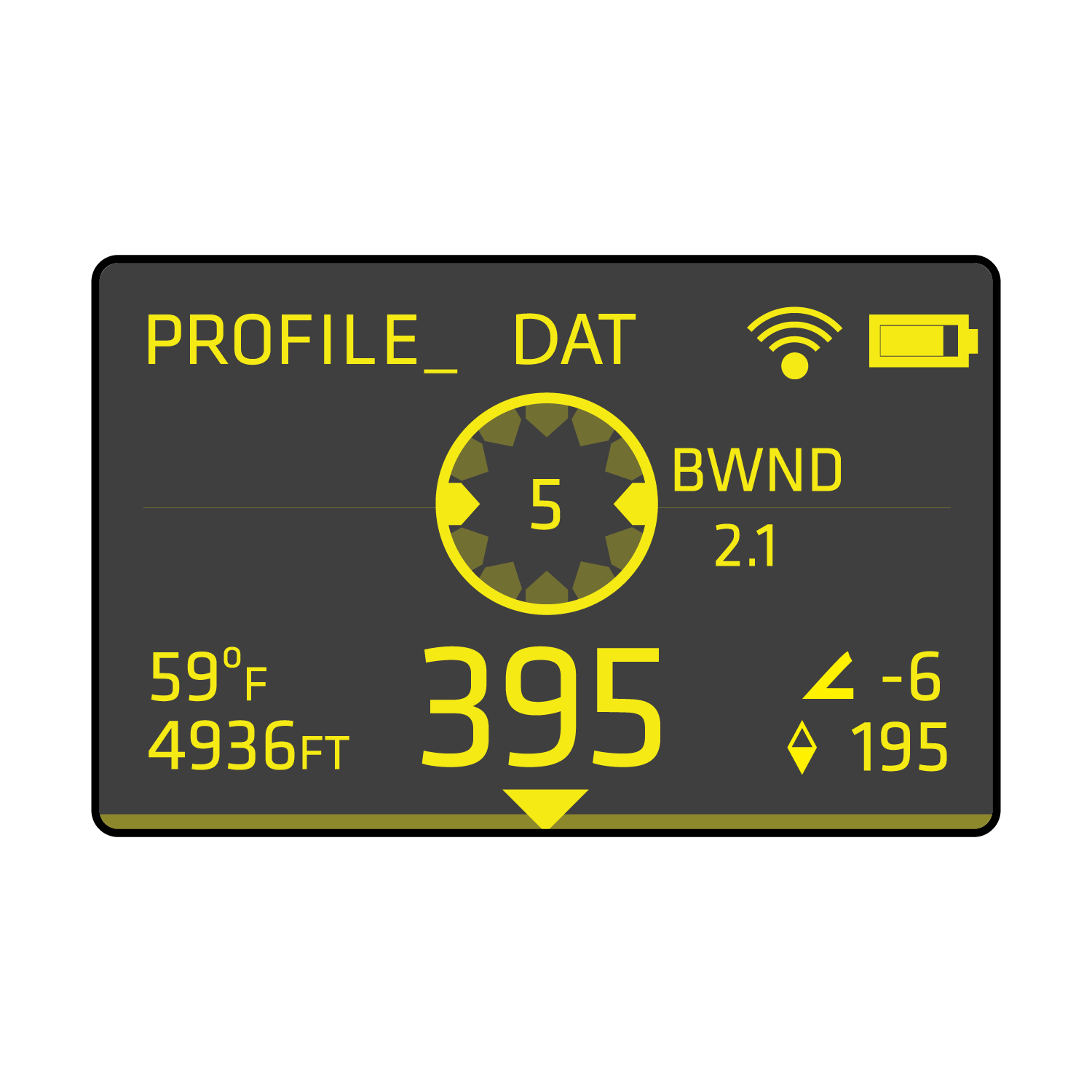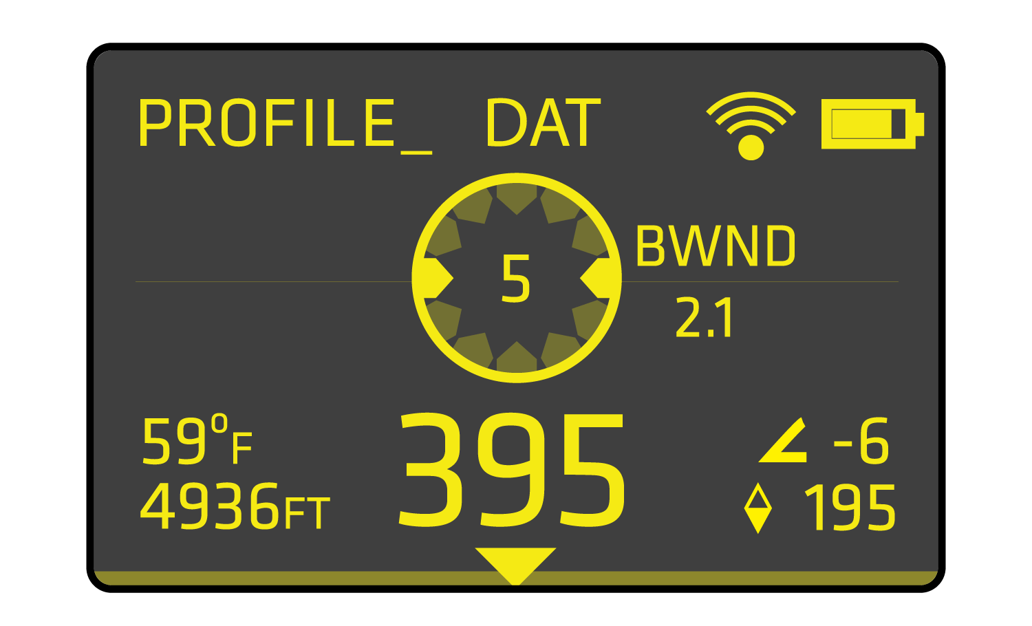 Base Wind is set at the Profile level synced from the Revic Ops app.  9 o'clock and 3 o'clock wind directions are shown on the Wind Clock in the center segment of the display. The base wind speed is shown in the center of the Wind Clock display.