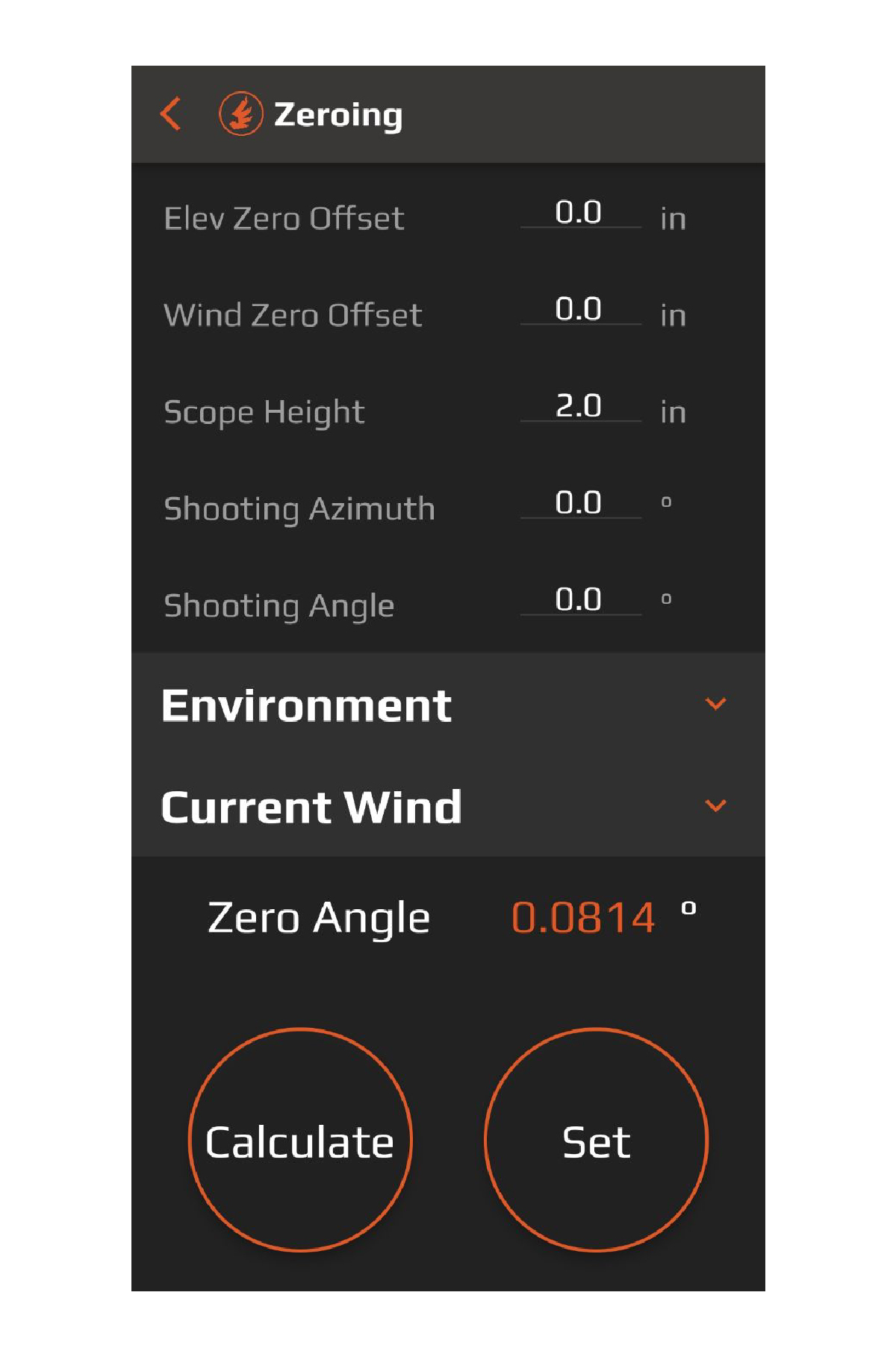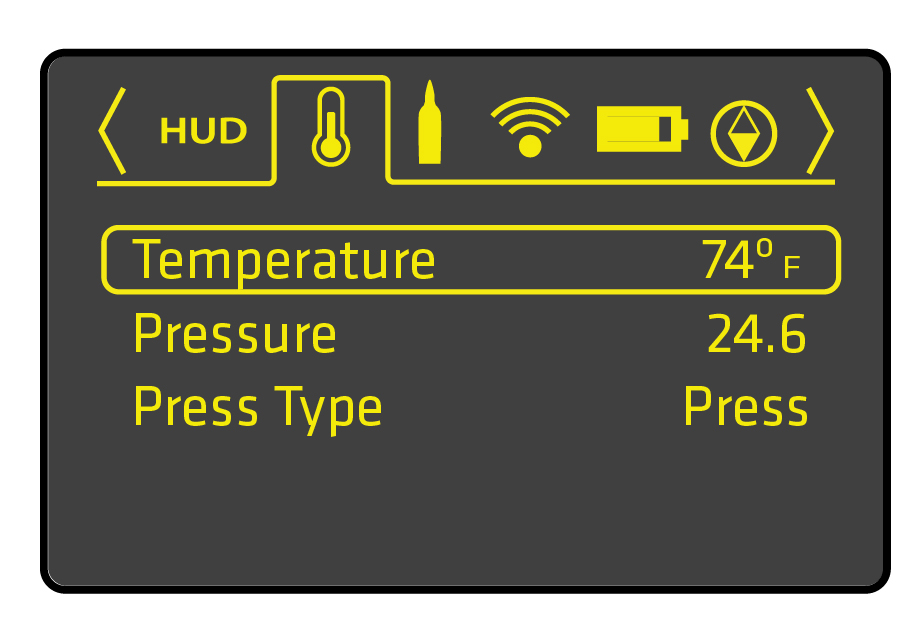 The ballistic solution is dependent on the environment conditions. Radikl Smart Rifle Scopes are equipped with on board sensors to measure the pressure and temperature each time a sensor value is updated. There will be a response time (typically between 2 ° F - 4 ° F  per minute) while the unit reaches ambient temperature if your riflescope has been warmed by a vehicle or shelter climate. Allow time for the device to acclimate to the environmental temperature, or manually adjust the riflescope temperature with the temperature override as described in the Settings Menu section of this manual.