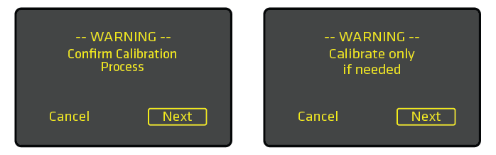 2. Two screens will appear asking if you wish to proceed with Turret Calibration